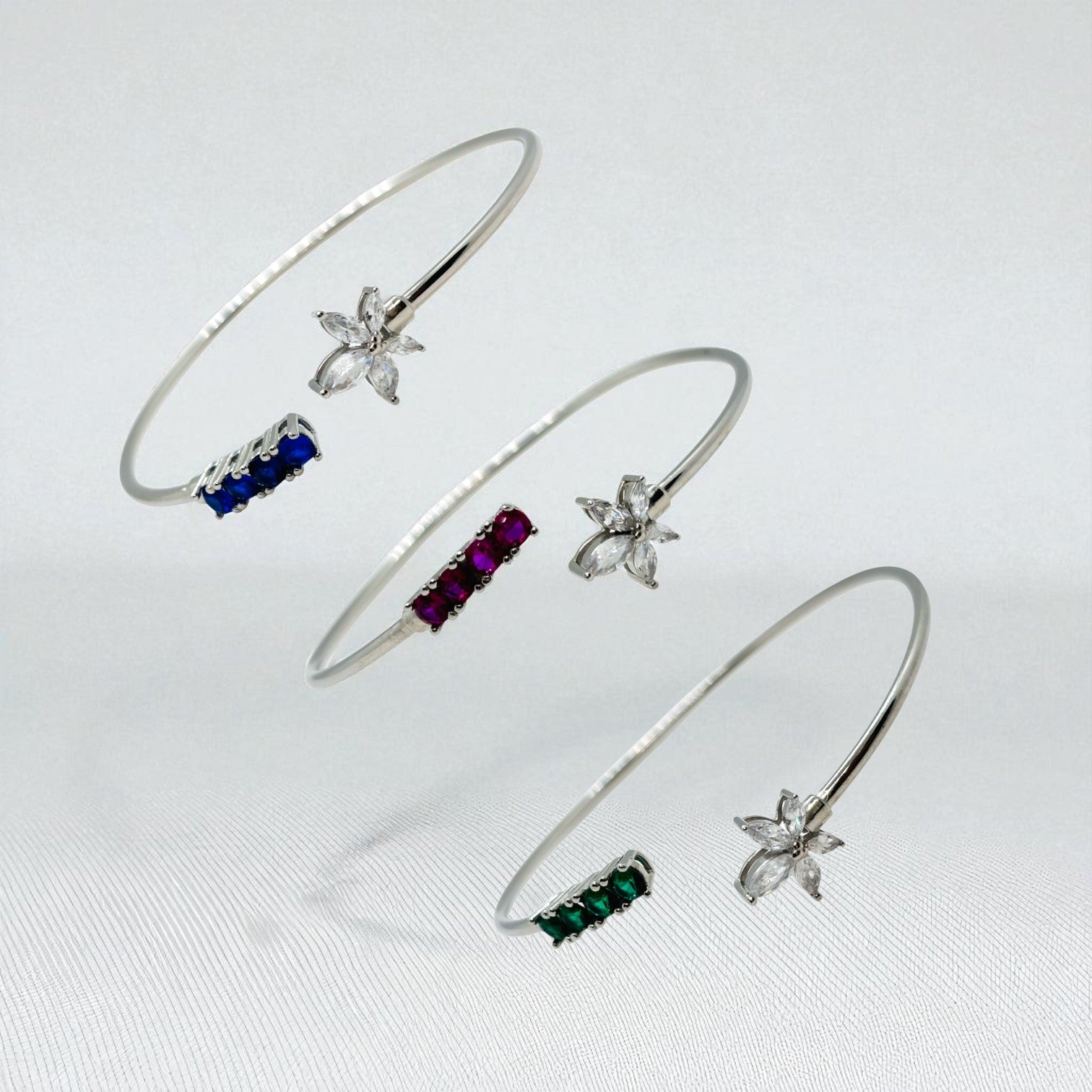 Discover the timeless charm of the Adjustable Star Bangle, now available with gemstones in a variety of captivating colors. Its sleek design offers an adjustable fit for comfort and grace, while the vibrant gemstones provide a sophisticated touch of color to complement any ensemble. Perfect for adding refined sparkle to your collection.