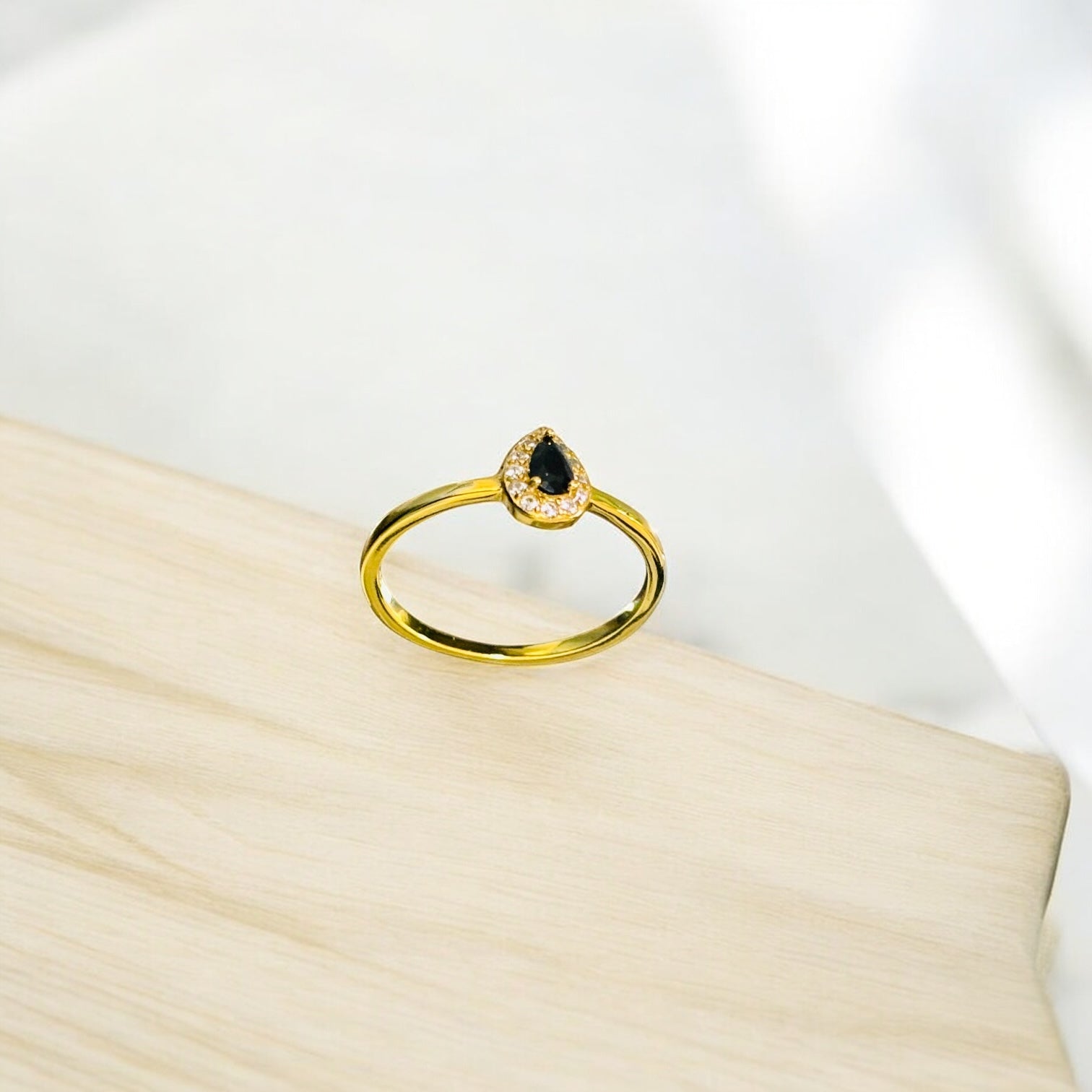 This black drop gold ring combines minimalist elegance with a modern edge, making it a perfect statement piece for any occasion. Its sleek black drop detail adds a touch of sophistication, while the gold band offers timeless charm, ensuring it complements both casual and formal styles effortlessly.
