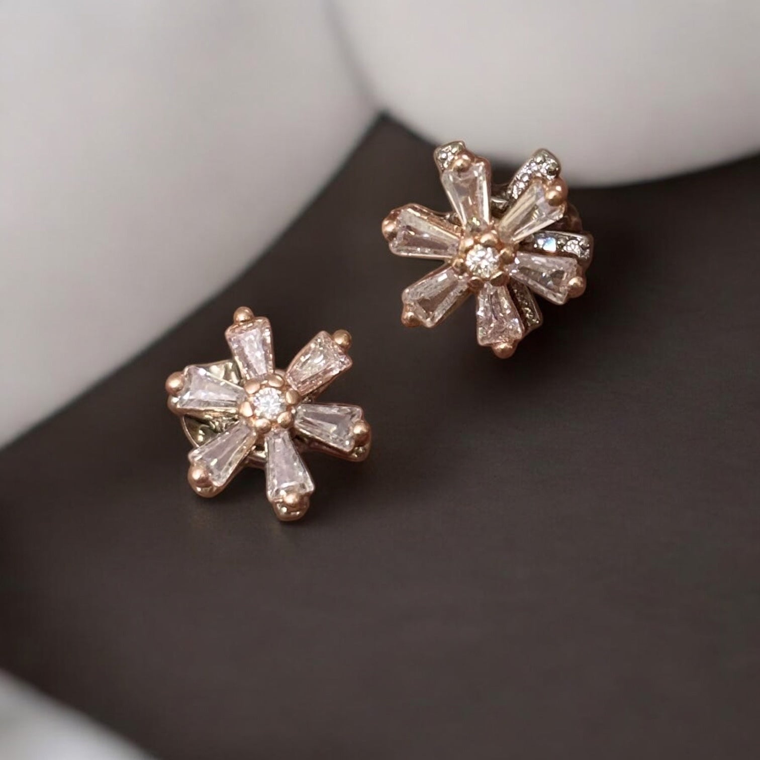 These rose gold plated stud earrings feature a delicate blooming flower design, perfect for adding a subtle touch of elegance to any outfit. Their minimal style makes them suitable for everyday wear, while the quality silver base ensures durability and comfort. Ideal for those who appreciate understated beauty with a graceful charm.