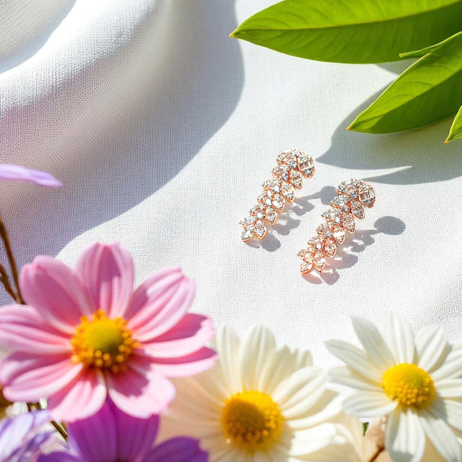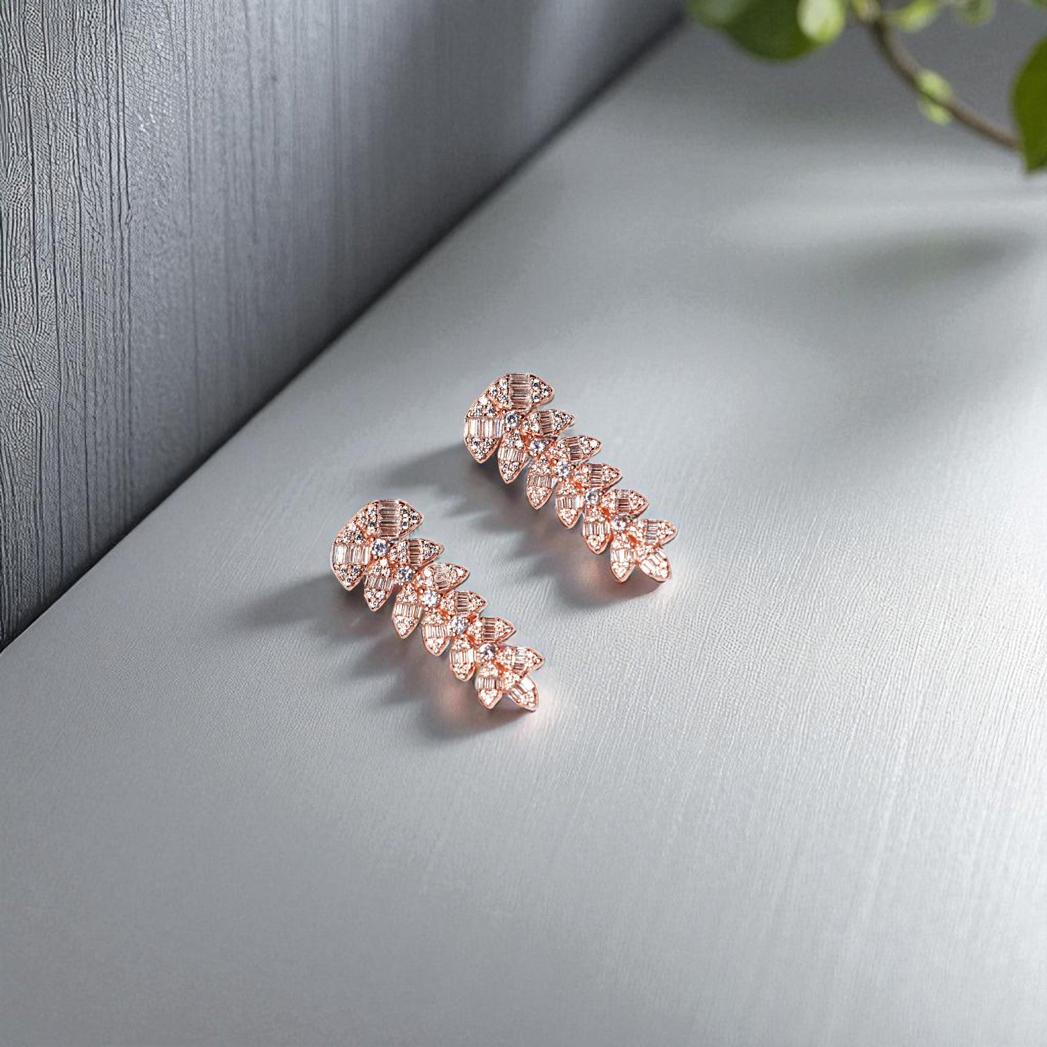 Expertly crafted with a cluster of delicate petals, these Rose gold earrings are a true statement piece. The intricate design showcases the beauty of nature and adds a touch of elegance to any outfit. Made with the highest quality materials, these earrings will make you stand out in any occasion.