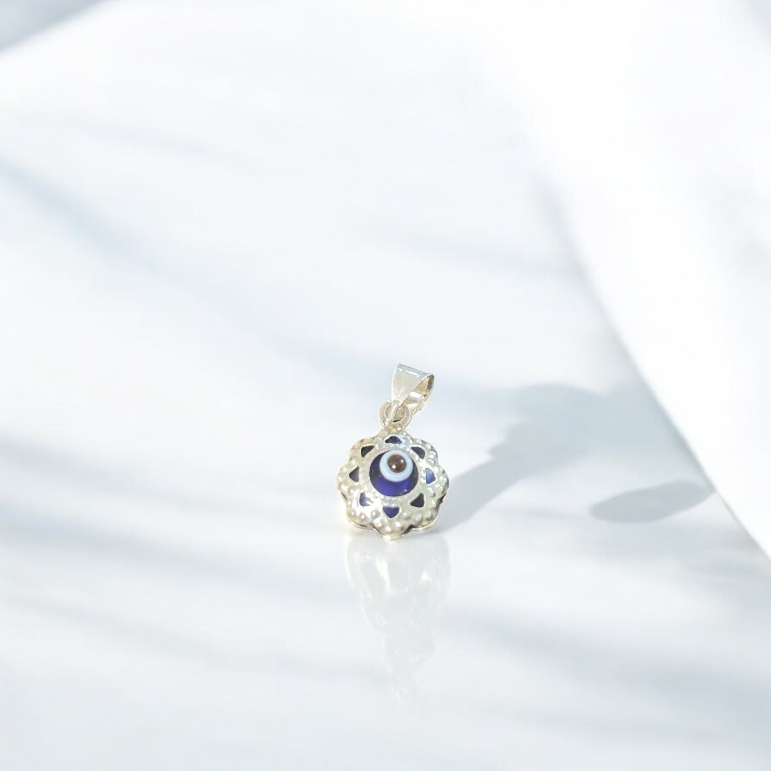 Keep those harmful UV rays and bad vibes at bay with our Evil Eye Sun Pendant! This unique piece combines the protection of the evil eye with the power of the sun, keeping you safe and stylish. Don't let the name fool you, this pendant is pure sunshine!