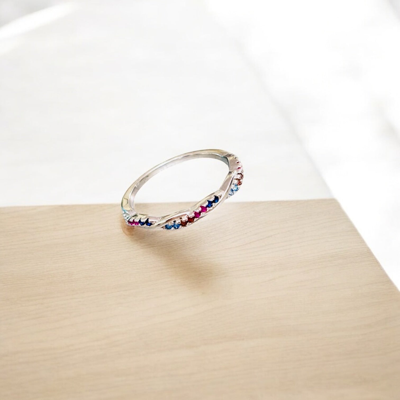 Crafted with a modern minimalist design, this Twisted Multi Color Ring is the perfect everyday accessory. Made with high-quality 925 silver, this ring exudes an effortless elegance. Embrace the simplicity of twisted detailing and elevate any outfit with this versatile piece.