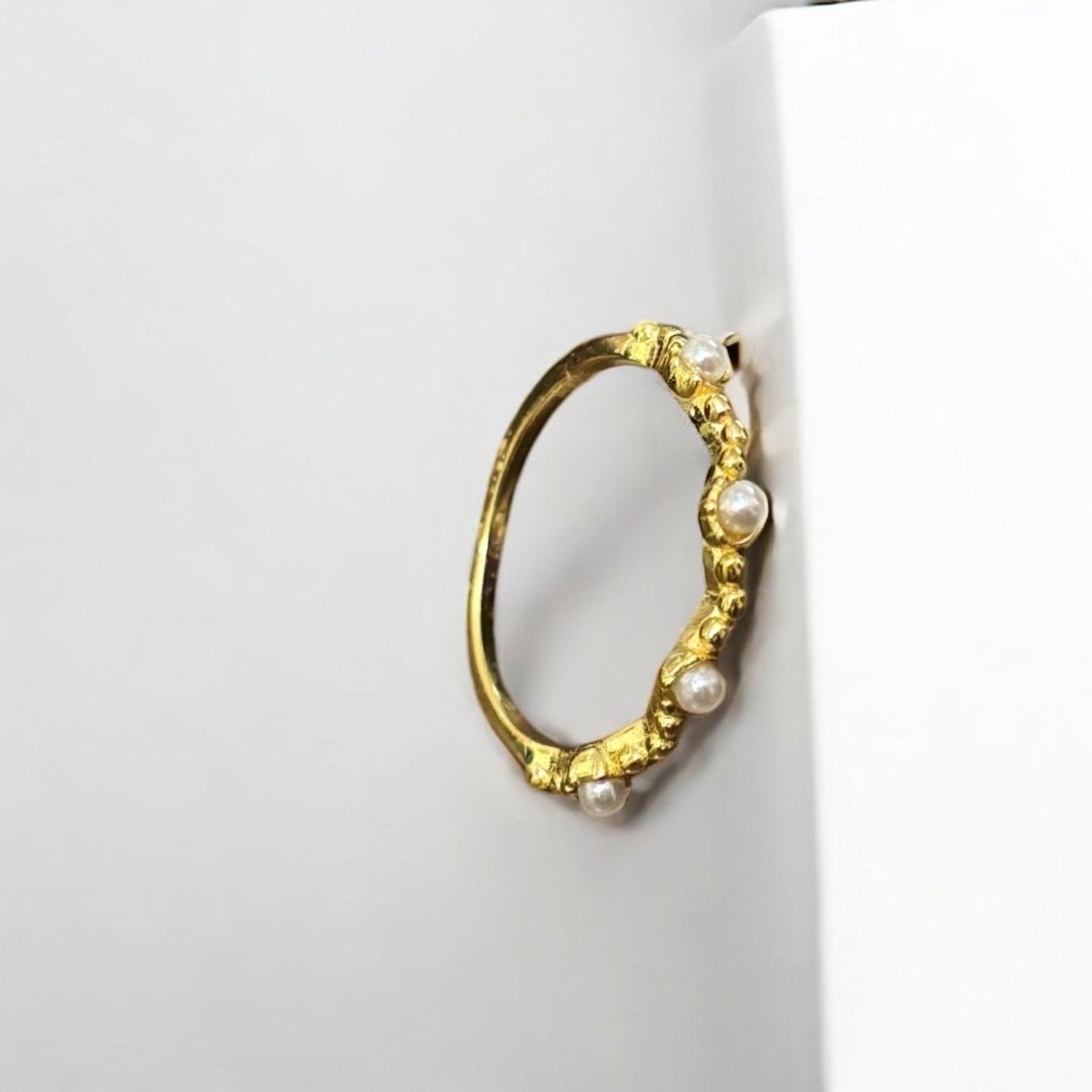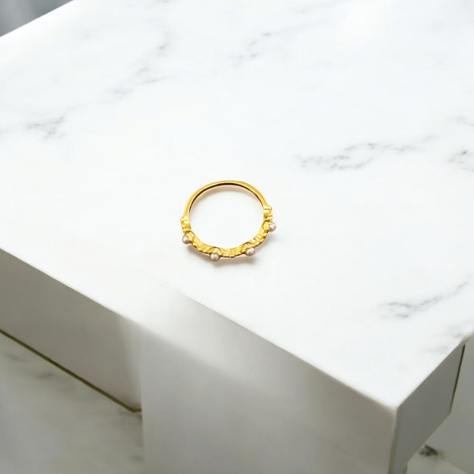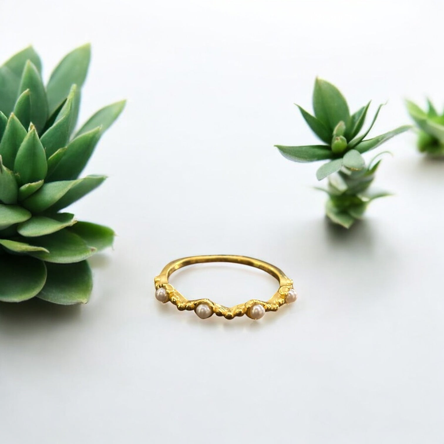 Upgrade your jewelry collection with our Mini Pearl gold ring. Made with gold plated silver, this elegant ring will add a touch of sophistication to any outfit. Its mini pearl feature adds a subtle yet luxurious touch. Elevate your style with this timeless piece that will never go out of fashion.