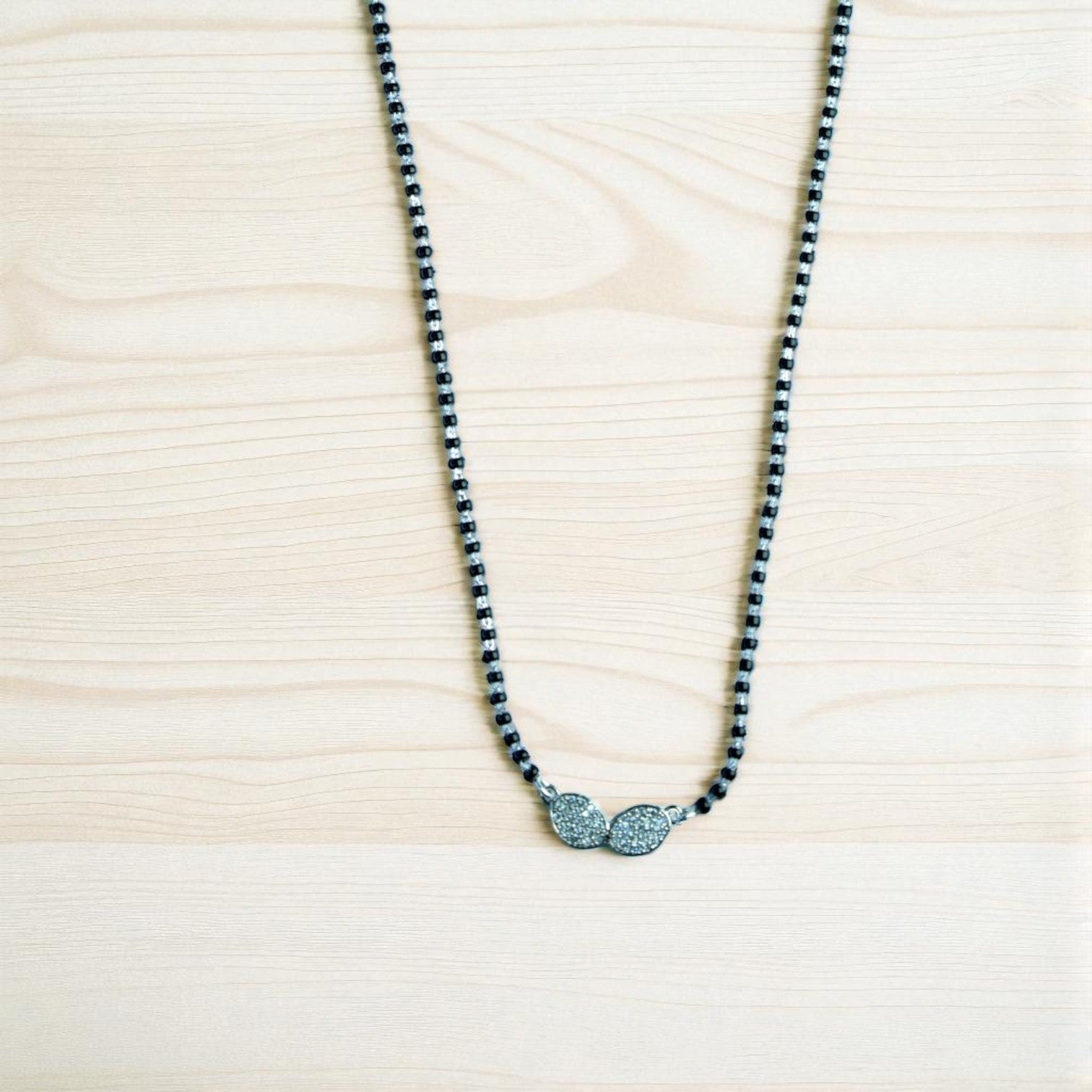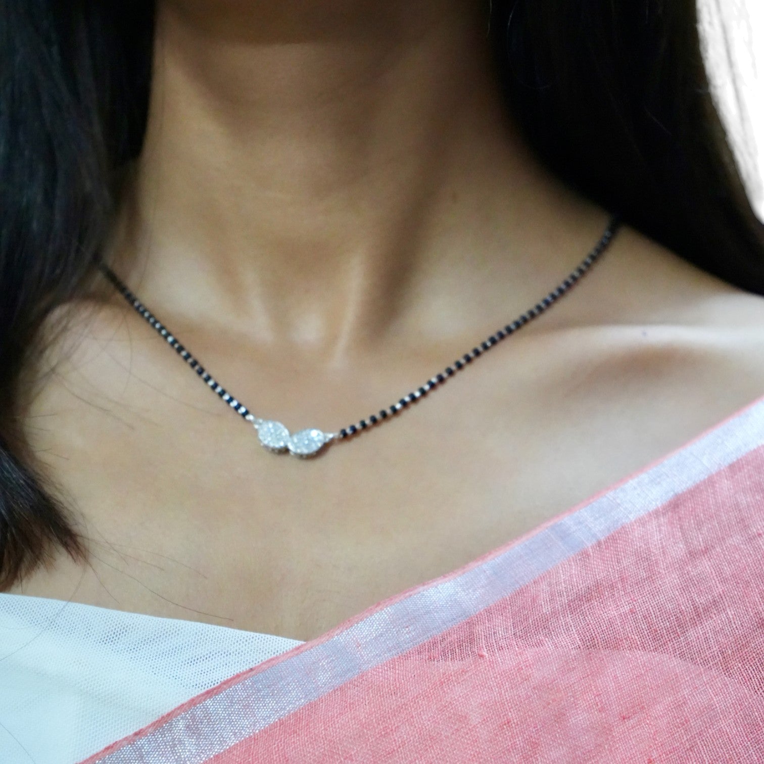 Elevate your traditional elegance with the Petal Charm Mangalsutra crafted in sterling silver. This delicate piece features intricately designed petal motifs that symbolize beauty and grace, adding a refined touch to your ensemble. Lightweight yet durable, it offers lasting comfort for daily wear while maintaining the timeless significance of a mangalsutra. A perfect blend of modern sophistication and cultural heritage, this mangalsutra complements both traditional and contemporary styles effortlessly.