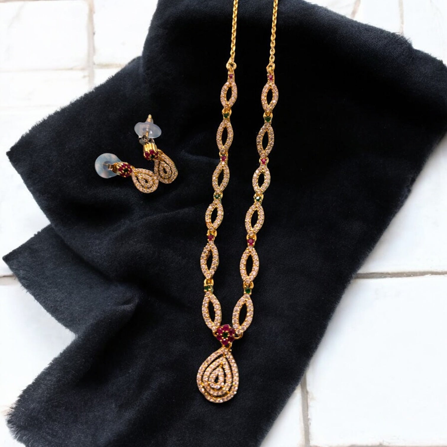 - Comes with matching earrings and silver Chain