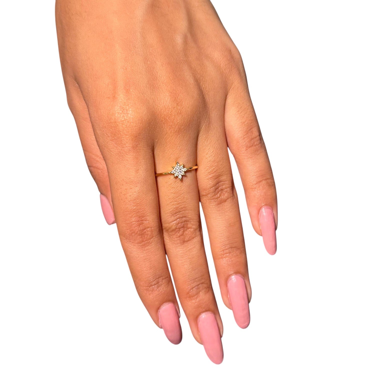 Elevate your elegance with this Radiating Star gold plated silver ring. Crafted with precision, its shimmering gold plating enhances the radiant star design, offering a refined statement piece that complements both everyday wear and special occasions. Perfect for adding a touch of sophistication to your jewelry collection.