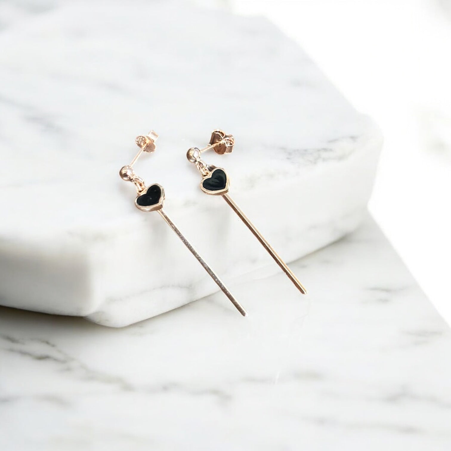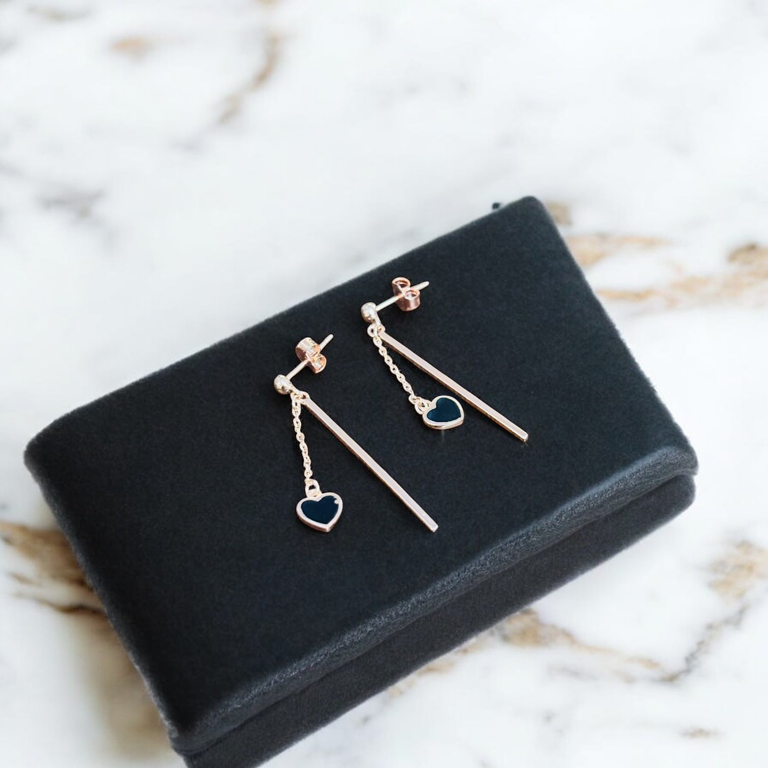 Add some playful elegance to your look with our Stick drop with chain Earring in rose gold and silver. These quirky earrings feature a delicate stick drop connected by a chain, perfect for a fun and unique style. (No exclamation points necessary.)